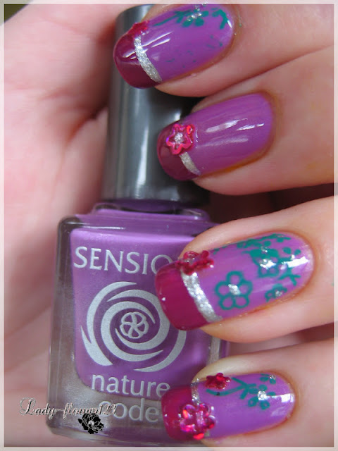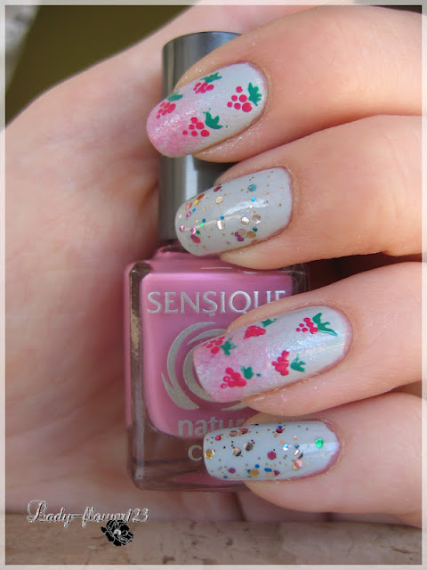 Do zrobienia ombre użyłam gąbki. Stempelki pochodzą z płytki essence.
