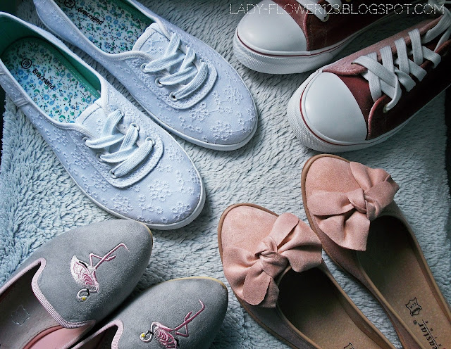 Moje najnowsze nabytki, jeśli chodzi o buty. Trzy pary pochodzą ze sklepu internetowego Deezee. Skuszona promocją majówkową nabyłam w okazyjnej cenie buty na cieplejsze dni. Za całość, z wliczoną ceną za przesyłkę zapłaciłam niewiele ponad 130 zł, więc się opłacało.