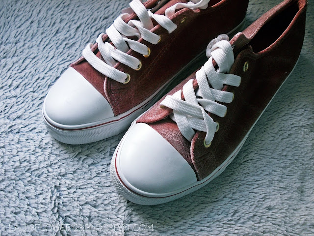 Trampki są bardzo wygodne. Klasyczne, niskie sportowe obuwie pokryte różowym welurem. Idealne do codziennych stylizacji. Można je założyć zarówno do letniej sukienki, jak i dżinsów. Uwielbiam tego typu obuwie, które sprawdzi się niemalże w każdej sytuacji. Jedyny ich minus jest taki, że nie będą praktyczne przy deszczowej pogodzie. Myślę, że usuwanie z nich zabrudzeń będzie bardzo trudne, a wręcz niemożliwe.